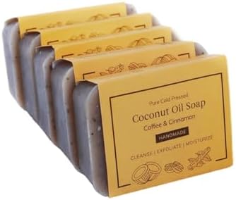 2. Kaprica Natural Handcrafted Cold Pressed Coconut Oil Soap With Exfoliating Organic Arabica Coffee & Cinnamon Essential Oil (60 x 5 = 300 g) Pack of 5