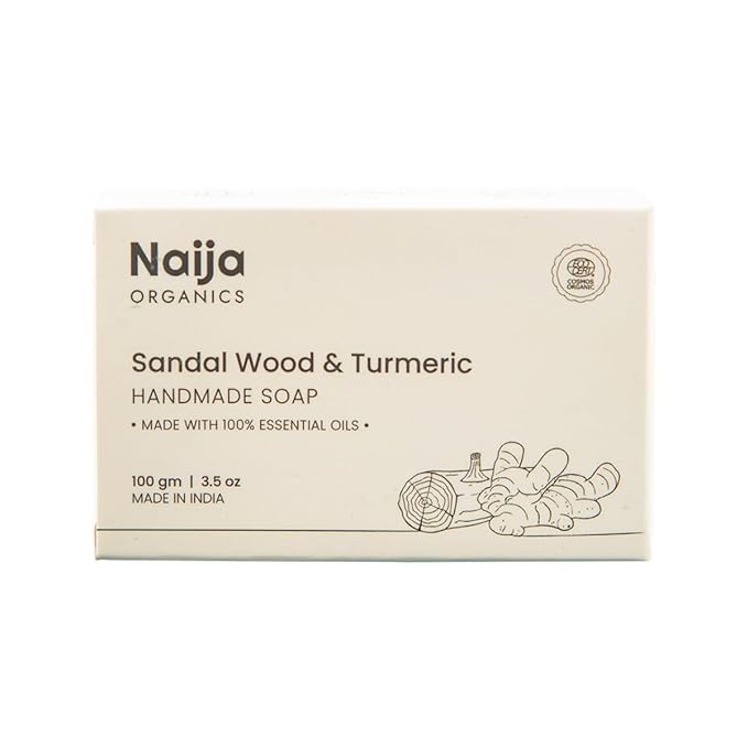 3. Naija Organics Sandalwood & Turmeric Natural Bath Soap | Skin Brightening, Deep Moisturizing, Chemical-Free, Handmade Soap| Haldi & Chandan Body Soap | For Men & Women, All Skin Types – 100g