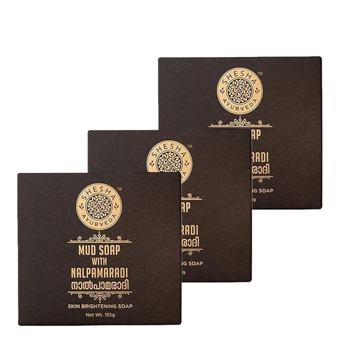 4. SHESHA AYURVEDA Mud With Nalpamaradi Skin Brightening Soap Bar 125G For Oily Skin – Pack Of 3
